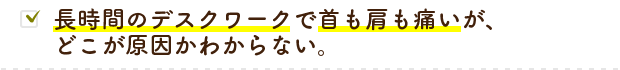 頭を支えている首や肩の筋肉は複数あり、姿勢や仕事中のクセで微妙にこっている箇所に違いがあります。